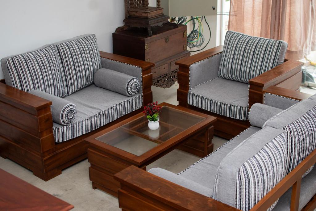 Comfortable Accommodations: The villa offers 3 AC double rooms and 1 AC triple room, featuring private bathrooms, air-conditioning, and modern amenities. Additional facilities include a shared kitchen, outdoor seating area, and family rooms.