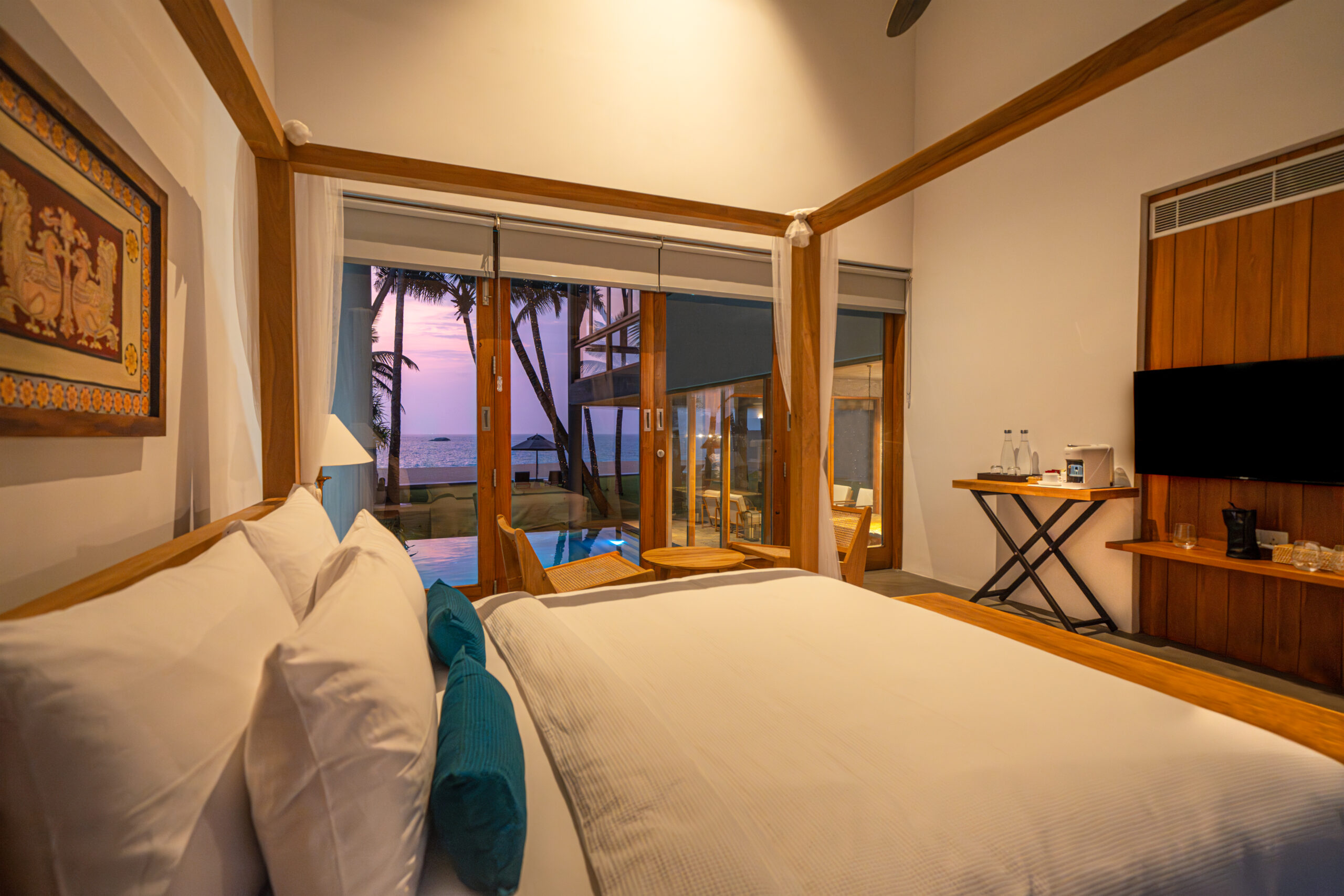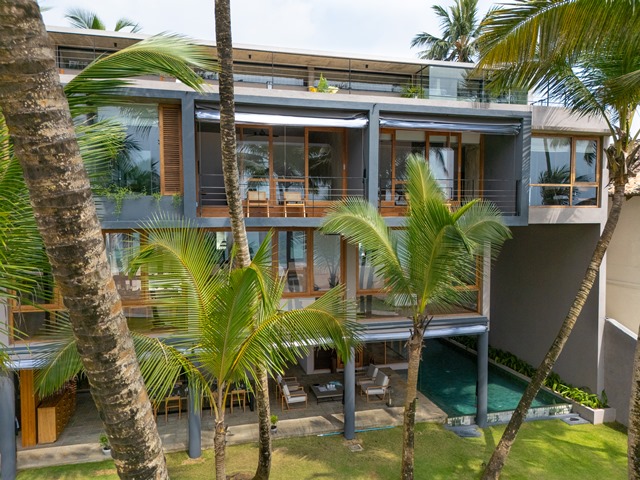 Designed in the spirit of tropical modernism inspired by Geoffrey Bawa, this elegant five-bedroom beachfront villa combines contemporary design with barefoot luxury. Nestled on a quiet stretch of soft sandy beach near Sri Lanka’s water sports capital, the villa is ideal for both adventure seekers and those looking for a serene escape.